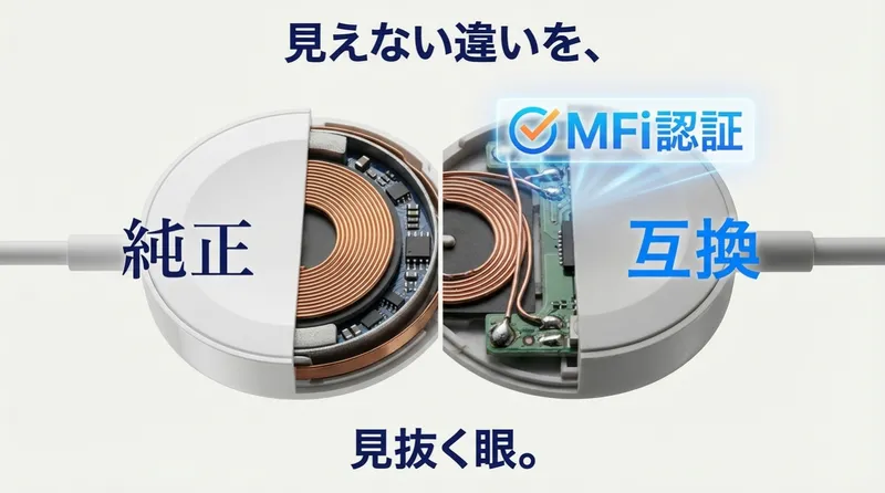 | 比較項目 | 純正品 | 互換品(MFi認証あり) | 互換品(認証なし) |