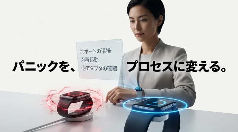 - OSのバージョン:最新のwatchOSでは、非認証の充電器を弾く制御が入る可能性がある。