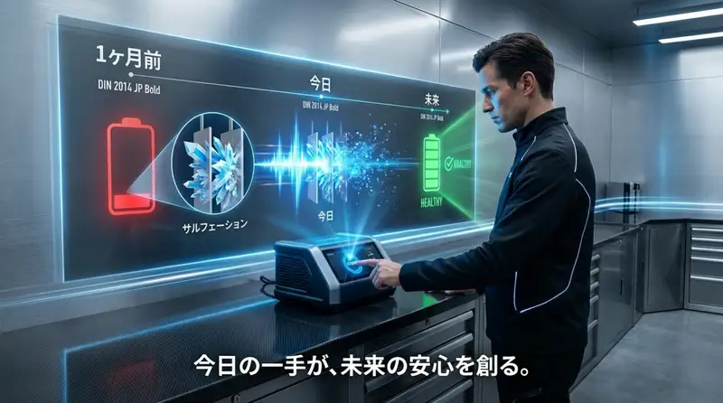 鉛バッテリーは、満充電の状態を維持することが長寿命化の秘訣です。放電した状態で放置すると、「サルフェーション」という現象が起き、性能が著しく低下します。