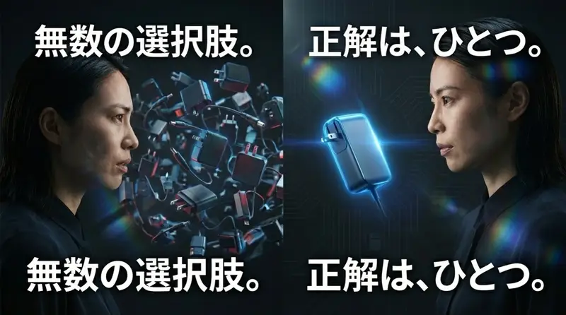 また、再発防止策として、小型のGaN(窒化ガリウム)採用充電器をカバンに常備しておくことを強くおすすめします。純正品よりはるかに小さく軽量で、スマホと兼用できるため、荷物を減らしつつ「充電器忘れ」のリスクをゼロにできます。
