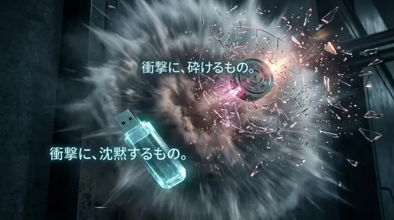 対してUSBメモリーは、可動部品がないため衝撃には非常に強いです。カバンに入れて雑に持ち運んでも、HDDほど簡単には壊れません。